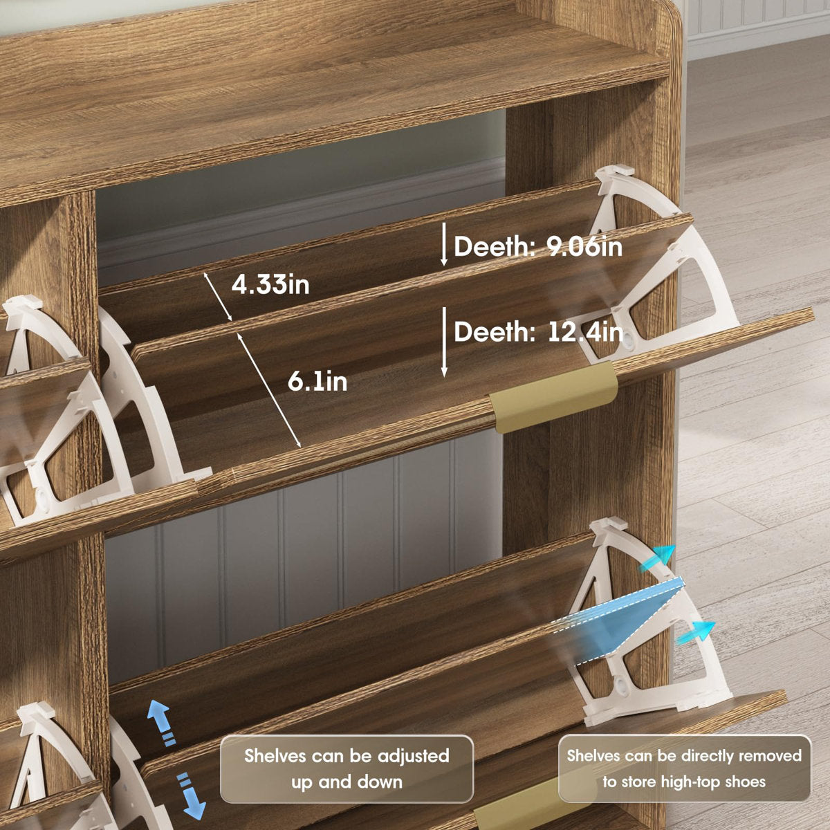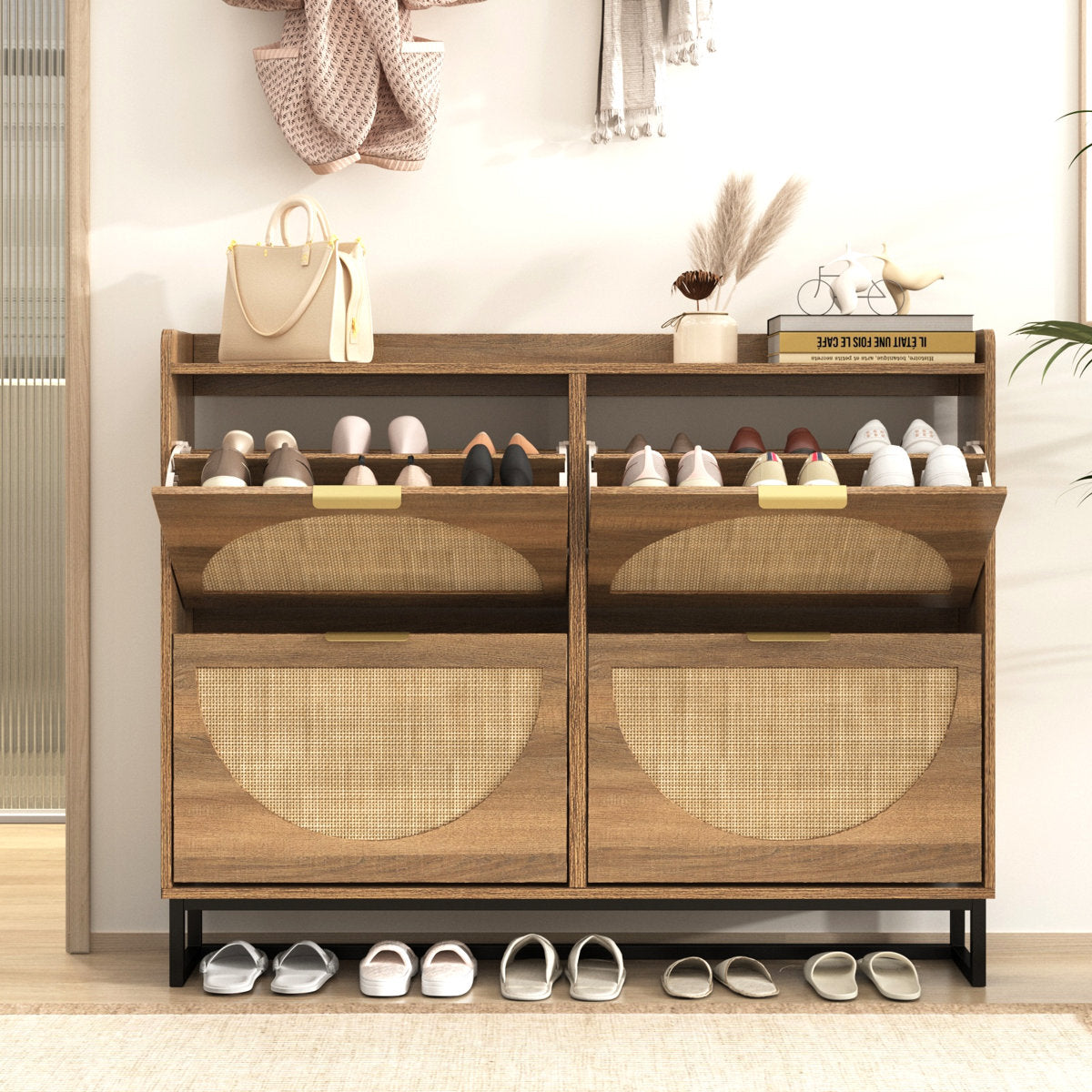 30 Pair Farmhouse Style 47" Shoe Cabinet With 4 Flip Drawers