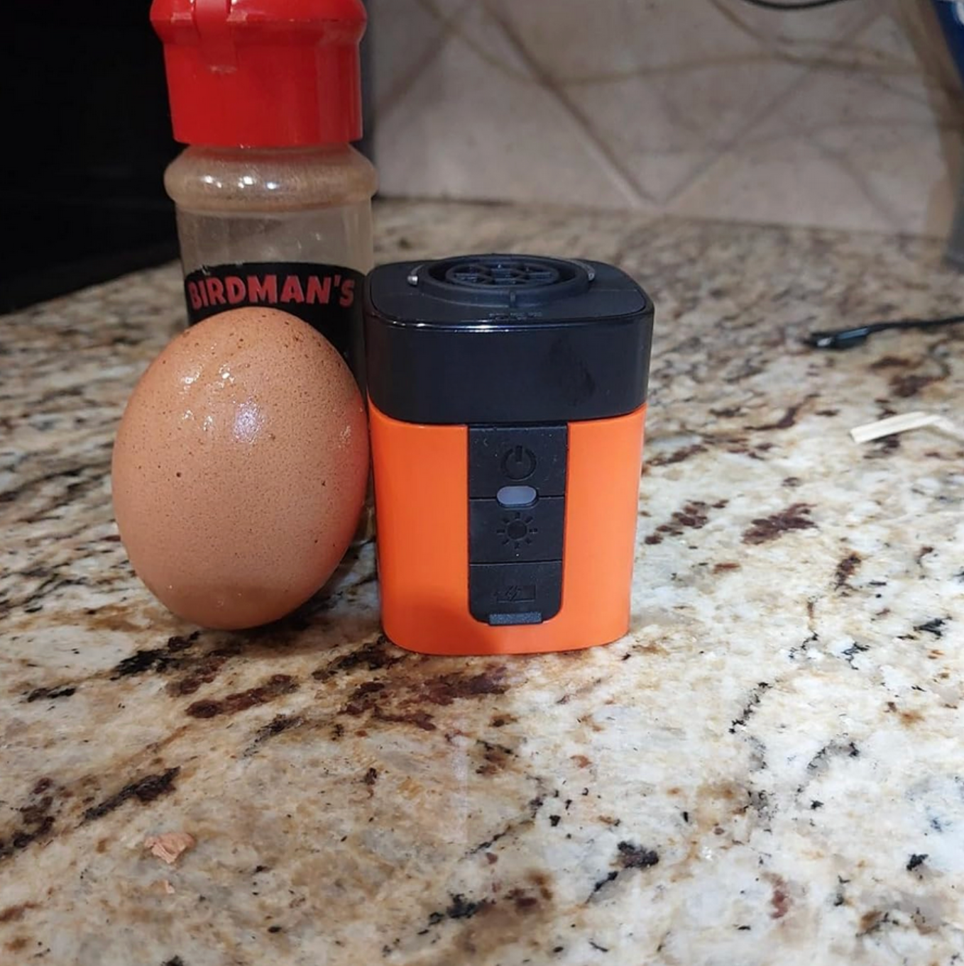 Smaller than an egg, lightweight, and comes with a hook for easy carrying or backpack attachment.