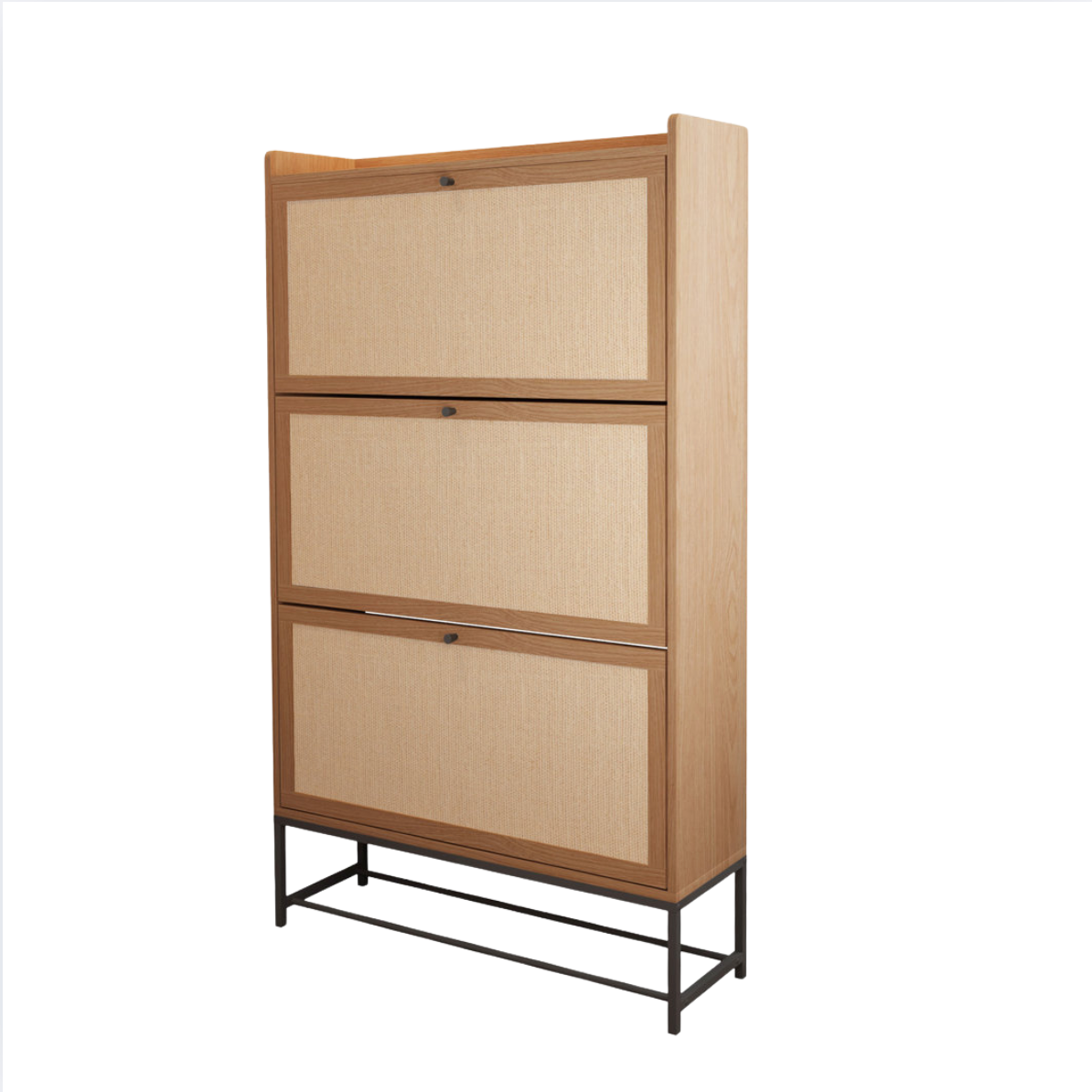30 Pair Minimalist 31" Solid Oak Shoe Cabinet With 3 Drop-Down Drawers