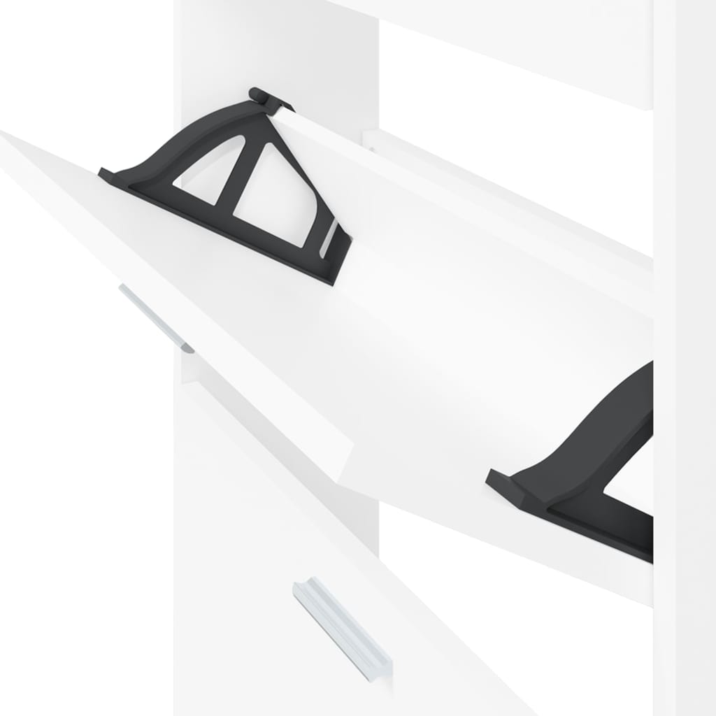 This Shoe Storage Cabinet is designed with a modern aesthetic, making it a great addition to your hallway or living room. Its sleek profile and clean, white finish not only enhance the visual appeal of your space but also provide a functional solution to keep your footwear organized, perfect for those who appreciate both style and practicality.